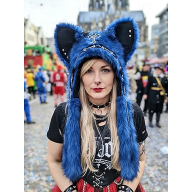 Cappello da Mardi Gras in finta pelliccia per donne in diversi colori design alla moda con dettagli incrociati perfetto per carnevale e balle in maschera