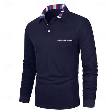 Per uomo Polo con bottoni POLO Informale Sport Bavero Manica lunga Di tendenza Essenziale A quadri Collage Pulsante Primavera & Autunno Standard Nero Blu marino Arancione Polo con bottoni