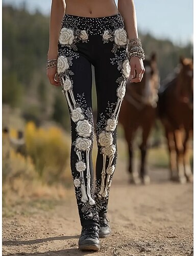 Per donna Leggings Vacanza Vintage Moda Lunghezza intera Vita Alta Floreale Grafico Animale Stampa Calore Termico Morbido Traspirante Elasticizzato Quotidiano All'aperto Vacanza Nero Beige Primavera