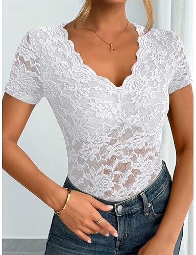 Per donna Camicia Blusa Top in pizzo Pizzo Semplice Elegante Classico Moderno Manica Corta Scollo a V Top Regolari Quotidiano Ferie Uscire Bianco Estate Primavera