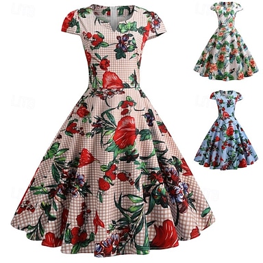 Retrò Vintage Anni 1950 Rockabilly Lunghezza al ginocchio Vestito Abito da cocktail Abito Swing Ad aletta Tinta unica Linea ad A Aderente & Svasato Costume Per donna Natale San Valentino Feste