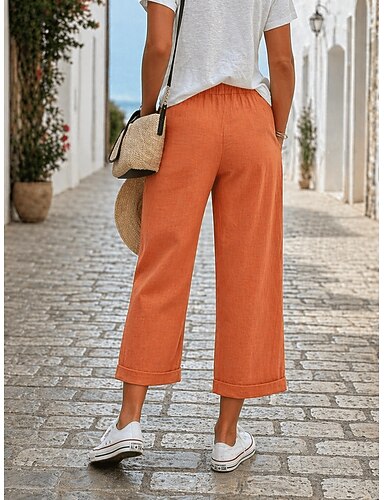 Per donna Gamba larga Chinos Vacanza Essenziale Lunghezza alla caviglia Misura del girovita medio Naturale Semplice Confortevole Inelastico Quotidiano Arancione Estate Primavera Vestibilità comoda