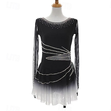 Abito da pattinaggio artistico Per donna Ragazze Pattinaggio sul ghiaccio Vestito Nero Patchwork Foro per il pollice Spandex Rete Elasticizzato Allenamento Professionale Competizione Vestiti da