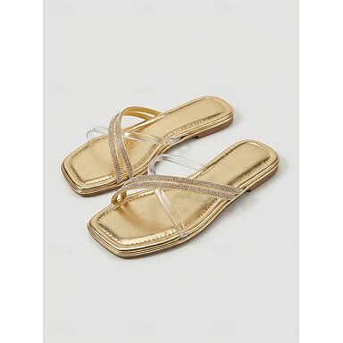 Sandali piatti da donna dorati con cinturini di strass – vacanza &scarpe da sera da resort