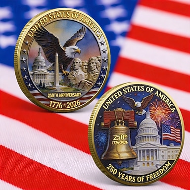 Moneta commemorativa del 250° anniversario degli Stati Uniti, moneta da collezione patriottica con aquila, croce e bandiera americana. &Design ispirato alla libertà, souvenir in metallo resistente da