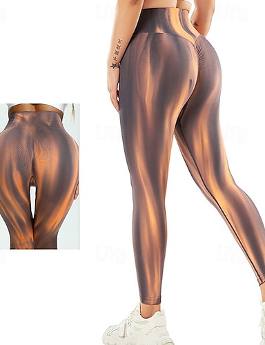 Per donna Pantaloni da yoga Sollevamento glutei Controllo addominale Vita Alta Allenamento in Palestra Corsa Fitness Leggings corti Grafico Giallo Autunno Gli sport Abbigliamento sportivo Alta