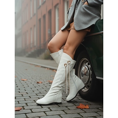 stivali bianchi con zeppa da donna - eleganti con dettagli allacciati, comodi e alla moda per gli outfit invernali