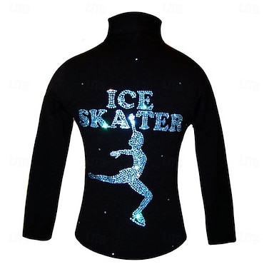 Giacca in pile per pattinaggio artistico Per donna Ragazze Pattinaggio sul ghiaccio Giacca Top Nero Patchwork Spandex Elasticizzato Allenamento Competizione Vestiti da pattinaggio sul ghiaccio Calore