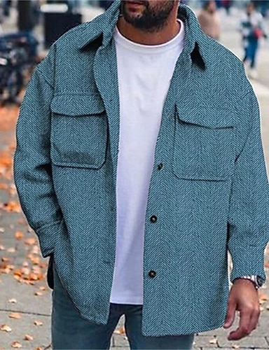 Per uomo Giacca Leggera Giacca Casual Giacca da Lavoro Casuale Quotidiano Tasca Bottonato Primavera Autunno Semplice Spina di Pesce Streetwear Elegante Collo ripiegato Regolare Blu Nero Marrone Verde