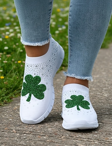 scarpe da ginnastica da donna con trifoglio verde per il giorno di San Patrizio: scarpe da passeggio leggere e traspiranti con suola ammortizzata, stile sportivo festoso per sfilate, viaggi, passeggiate quotidiane, allenamenti e abbigliamento casual