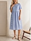 Per donna Abito Midi Finto cotone e lino Abito a Tubino Vestito Casual Abito Estivo Moda Classico All'aperto Ferie Data Vestibilità regolare Blocco di colori Manica Corta Girocollo Blu Estate