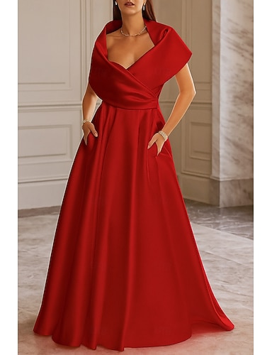 Linea ad A Lunghezza al pavimento Abiti da Cocktail Abito da Sera Abiti da festa Elegante Vintage Senza Maniche Senza Spalle Formale Ospite di nozze Raso con Tasca Scialle