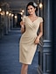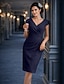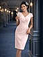 Abito a tubino Madre della Sposa Ospite di matrimonio Elegante Collo a V Lunghezza al ginocchio Tessuto elasticizzato Manica corta con arricciature taglia personalizzata gratuita