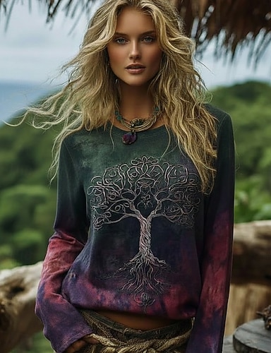 Per donna Camicia Boho Maglietta Stampato Grafico Bohemien Vintage Casual Manica Lunga Girocollo Top Regolari Quotidiano Weekend Abbigliamento da vacanza Verde Estate Primavera Autunno