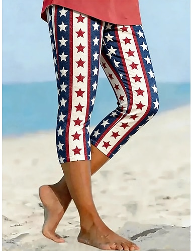 Per donna Chinos Leggings Vacanza Moda Streetwear Capri Vita AltaPantsGiorno dell'indipendenza americana Floreale Grafico Bandiera Americana Stampato Comodità Morbido Confortevole Elasticizzato