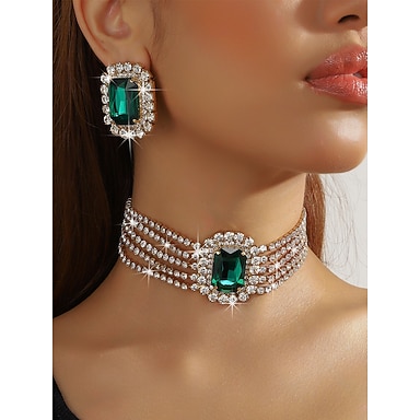 collana girocollo da donna con strass verde smeraldo &set di orecchini, gioielli con cristalli color oro, stile glamour per le feste &eventi serali
