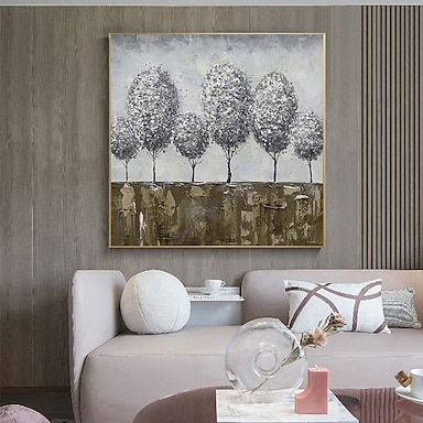Pittura A Olio Fatta A Mano Su Tela Decorazione Della Parete Di Arte Pittura Di Piante Astratte alberello Grigio Per La Decorazione Domestica Pittura Arrotolata Senza Cornice Non Allungata
