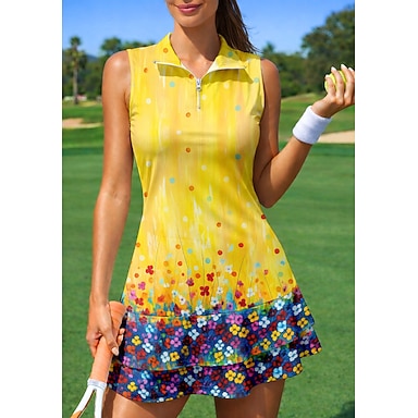 Per donna Geometrico Floreale Abito sportivo Abito polo da tennis Senza Maniche Cerniera Zip a un quarto Elastico Traspirante Pallavolo Tennis Golf Colletto Collo ripiegato Pantaloncini Vestito Giallo