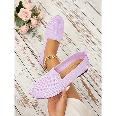 scarpe slip-on da donna in morbida maglia viola: minimaliste, traspiranti e leggere per l'ufficio, il pendolarismo, i viaggi e l'abbigliamento casual quotidiano