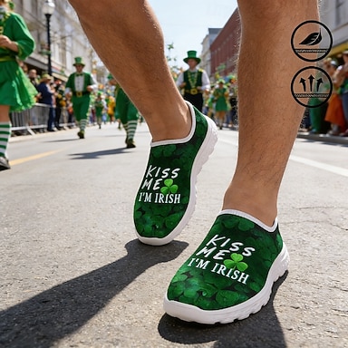 Sneakers da uomo per il giorno di San Patrizio: design con trifoglio portafortuna e gnomo, leggere e comode per i festeggiamenti di San Patrizio