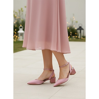 Décolleté rosa da donna con tacco a blocco e cinturino alla caviglia, eleganti scarpe da madre della sposa per matrimoni in giardino, comode scarpe eleganti con tacco basso per cerimonie all'aperto.
