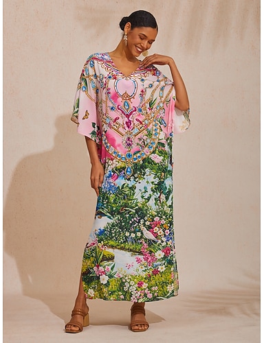 caftano con maniche dolman in chiffon fluido da donna lionheart