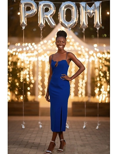 Tubino Colonna Lunghezza Tè Abito da Ballo Abito da invitata a nozze Abito da sera Abiti da Ballo Elegante Senza Maniche Spalline sottili Balli di fine anno Formale Crepe Elasticizzato Senza schiena