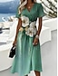 Abito midi da donna Abito estivo Abito a linea Lino Vacanza Casual Spiaggia Uscita Vestibilità ampia Grafica Geometrica Manica corta V Collo Rosa Blu Khaki Estate