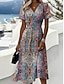 Per donna Abito Midi Abito a trapezio Vacanza Casual Boho Vestibilità regolare Floreale Grafico Manica Corta Scollo a V Blu Rosa Arancione Verde Estate Primavera