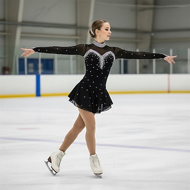 Abito da pattinaggio artistico Per donna Ragazze Pattinaggio sul ghiaccio Vestito Nero Patchwork Foro per il pollice Spandex Rete Elasticizzato Allenamento Professionale Competizione Vestiti da