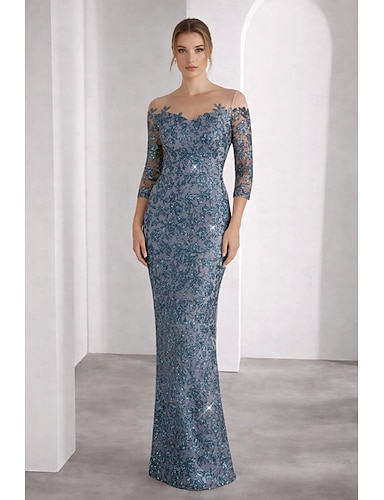 Tubino Colonna Lunghezza al pavimento Abito da invitata a nozze Abito Formale Abito da sera Abito da cerimonia per signora Manica 3/4 Scollo Tondo Vintage Festa Ospite di nozze Serata Formale Pizzo
