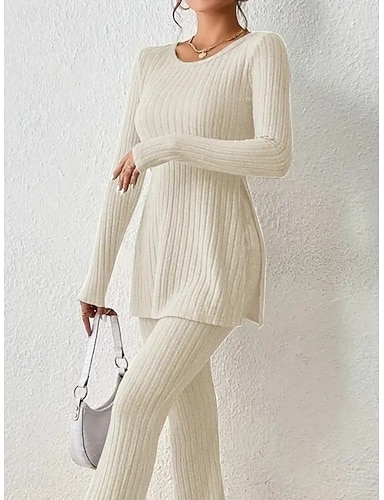 Per donna Set da due pezzi Set di Pantaloni Manica Lunga Girocollo Semplice Moda Streetwear Casuale Quotidiano All'aperto Blu Nero Avorio Estate Vestibilità regolare