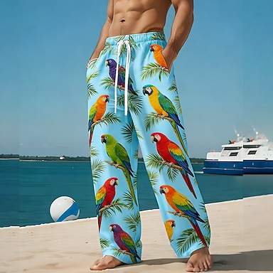 Per uomo Uccello Pappagallo Piante Tropicali Pantaloni Pantaloni casual Pantaloni Larghi Misura del girovita medio Hawaiano All'aperto Vacanza Abbigliamento mare Coulisse elastica in vita Pantaloni