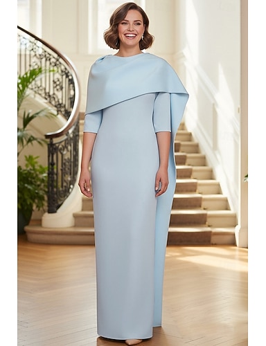 Tubino Colonna Lunghezza al pavimento Abito Formale Abito da sera Abito da cerimonia per signora Manica 3/4 Girocollo Elegante Formale Raso Crepe Elasticizzato con Tinta unita