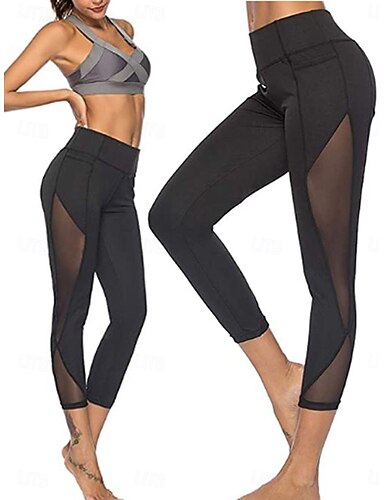 Per donna Pantaloni Leggings Vacanza Moda Streetwear Lunghezza al polpaccio Vita Alta Semplice Elastico in vita Rete Confortevole Elasticizzato Palestra Yoga Sport all'Aperto Nero Primavera Autunno