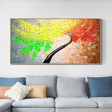 pittura a olio fatta a mano su tela decorazione artistica da parete originale pittura ad albero colorato pianta astratta pittura floreale per la decorazione domestica con cornice allungata / senza