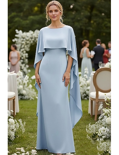 Tubino Colonna Lunghezza al pavimento Abito da invitata a nozze Abito Formale Abito da sera Abito da cerimonia per signora Manica 3/4 Girocollo Elegante Formale Tessuto Elasticizzato Crepe