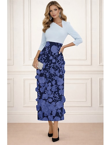 Tubino Colonna Lunghezza al pavimento Abito da invitata a nozze Abito Formale Abito da sera Abito da cerimonia per signora Manica 3/4 Girocollo Elegante Formale Tessuto Elasticizzato Crepe