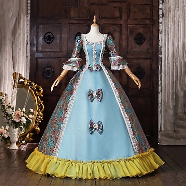 Rococò Barocco Abito da Ballo Lunghezza al pavimento Vestito Abito da Ballo Principessa Sposa Papillon Abito da ballo Collo quadrato Costume Per donna Reale Halloween Carnevale Mascherata Balli di