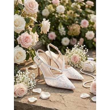 sandali da donna con tacco alto e punta a punta in pizzo - eleganti décolleté da sposa per matrimoni in giardino