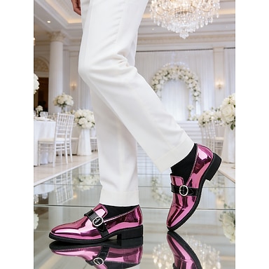 scarpe monk strap da uomo in vernice rosa con dettagli neri: scarpe eleganti alla moda per eventi e matrimoni all'avanguardia