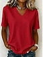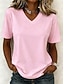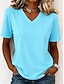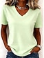 Per donna Maglietta Camicia di cotone Tinta unica Moda Elegante Essenziale Manica Corta Scollo a V Top Regolari Casuale Quotidiano Uscire Blu Bianco Verde chiaro Rosa Rosso Estate Primavera