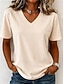 Per donna Maglietta Arricciato Semplice Elegante Moda Classico Manica Corta Scollo a V Top Regolari Casuale Quotidiano Uscire Bianco Rosa Albicocca Grigio Estate Primavera