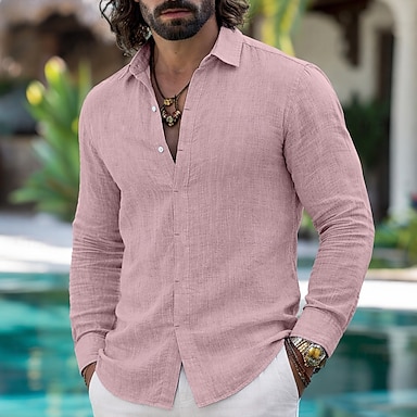 Per uomo Camicia Camicia di lino Camicia Estiva Camicia casual Camicia da Spiaggia Camicia con Bottoni Semplice Casuale Quotidiano Nero Bianco Verde chiaro Rosa Manica Lunga Collo ripiegato Estate