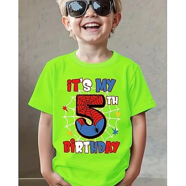 Unisex Ragazzi 3D Grafico Ragno È il mio quinto compleanno Maglietta Manica Corta Stampa 3D Estate Primavera Sport Moda Streetwear Bambini 4-12 Anni Girocollo Casuale Quotidiano All'aperto
