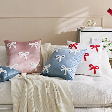 federa per cuscino in velluto per San Valentino, graziosa federa con fiocco per divano, federa decorativa in stile ins, morbido peluche per l'arredamento del soggiorno e della camera da letto