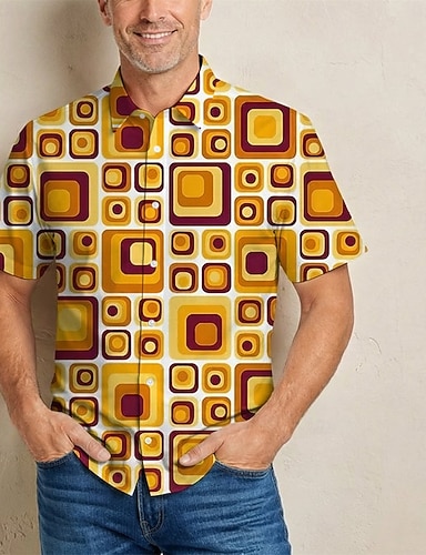 Retrò Vintage Anni '70 Camicia Camicia Aloha Hippie Geometrico Etnico Costume Per uomo Mascherata Feste Abbigliamento quotidiano Parata dell'Orgoglio Adulti Camicia
