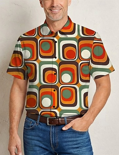 Retrò Vintage Anni '70 Camicia Disco Geometrico Psichedelico Costume Per uomo Halloween Carnevale Festival Musicale Parata dell'Orgoglio Festa a tema retrò Adulti Camicia