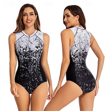 Per donna Top sottomuta Costume Intero Stampato Cerniera Frontale Spandex Protezione Solare UV UPF50+ Asciugatura Rapida Senza Maniche Body costume da bagno Surf Spiaggia Sport Acquatici Estate
