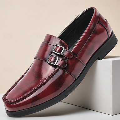 mocassini da uomo bordeaux con fibbia, scarpe eleganti in pelle lucida, scarpe formali slip-on per lavoro, matrimonio, sposo, ufficio, banchetti, feste, eventi serali, stile elegante e formale